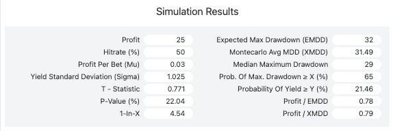 Expected maximum drawdown: at its core, betting is about probabilities, and even with a clear edge, losing streaks are inevitable due to variance. The maximum expected drawdown represents the worst-case downswing you might encounter in your bankroll over a given period or number of bets. Being aware of this figure helps set realistic expectations and prepares you mentally and financially for the lows.