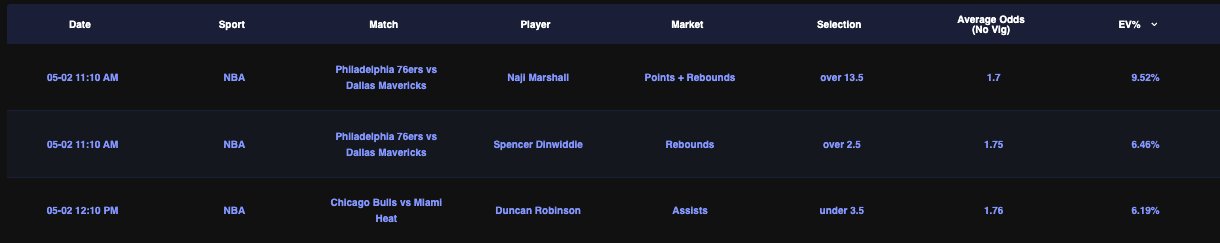 Our Pick’Em tool makes it super easy to make profitable pick’em bets. The tool calculates all the fair market prices without the market vig for every market that is displayed in the Dabble pick em tool.