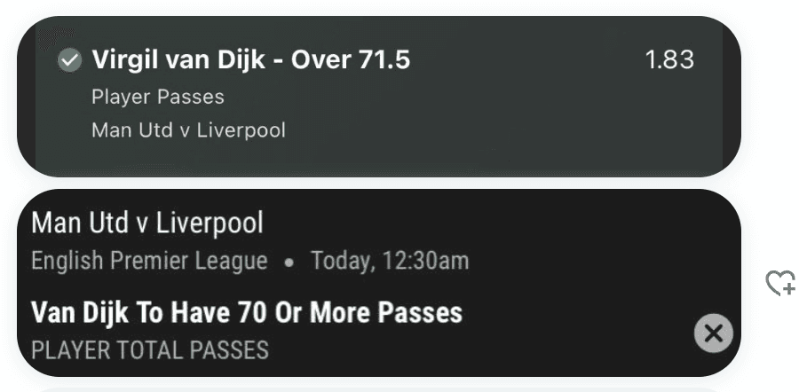 But it can also go the other way, where both your bets are settled as losers. From the table above, it seems that all bookmakers do mostly use the similar source. However, market to market they might use different sources. Anyway, all of this is to say, is that there is a possibility that your two bets placed for the arbitrage bet are both settled as losers. See the example below, where Van Dijk to get over 71.5 passes was settled as a winner on Bet365 but on Pointsbet it was a loser